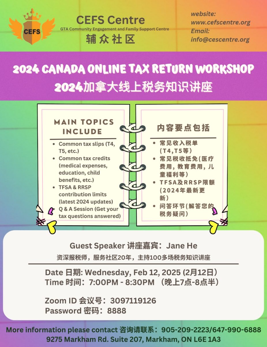 Tax Return Workshop Feb 28, 2025 | Community News, Community Services, Education, Family Services, Latest Events, Media and News, News